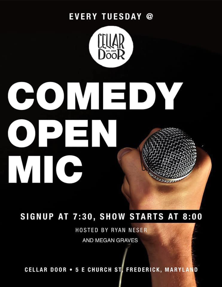 Two great weekly events to satisfy your comedy cravings. Ryan and Megan bring the comedy, Cellar Door Restaurant supplies the one of a kind menu and creative cocktails.